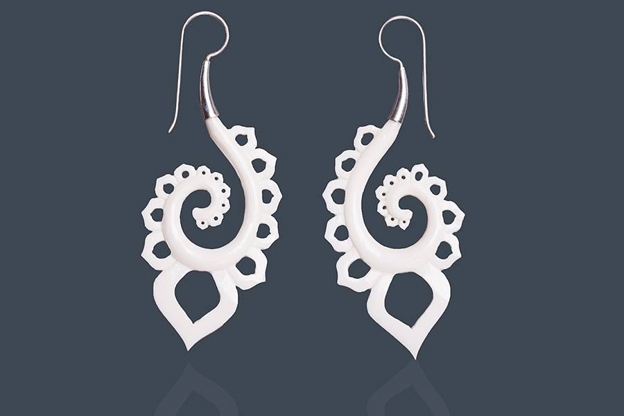 Padma in the Balinese language means eternal enlightenment. I've taken the Padma symbol and twisted it into a wave, symbolizing water. The carved point stands for the warrior goddess in you making these earrings a more of a light statement accessory. Classy they are, and a statement piece to any wear!