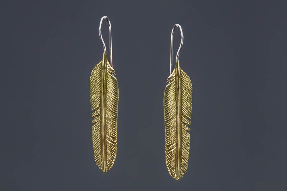 "Bulu"meaning Feather in Balinese,the design was in meaning of the feather symbolizing women-hood in the Balinese Culture. These light weight brass earing's, with sterling silver clasps, are an easy casual wear for every day use.