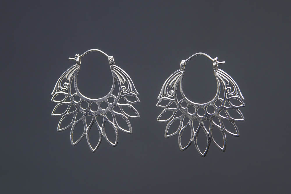 These earring's are symbolic to the earths light. The bottom being the sun, shaping into a crescent moon, with holes symbolizing the stars and waves wrapping the universal light. Making it a complete universal wear!